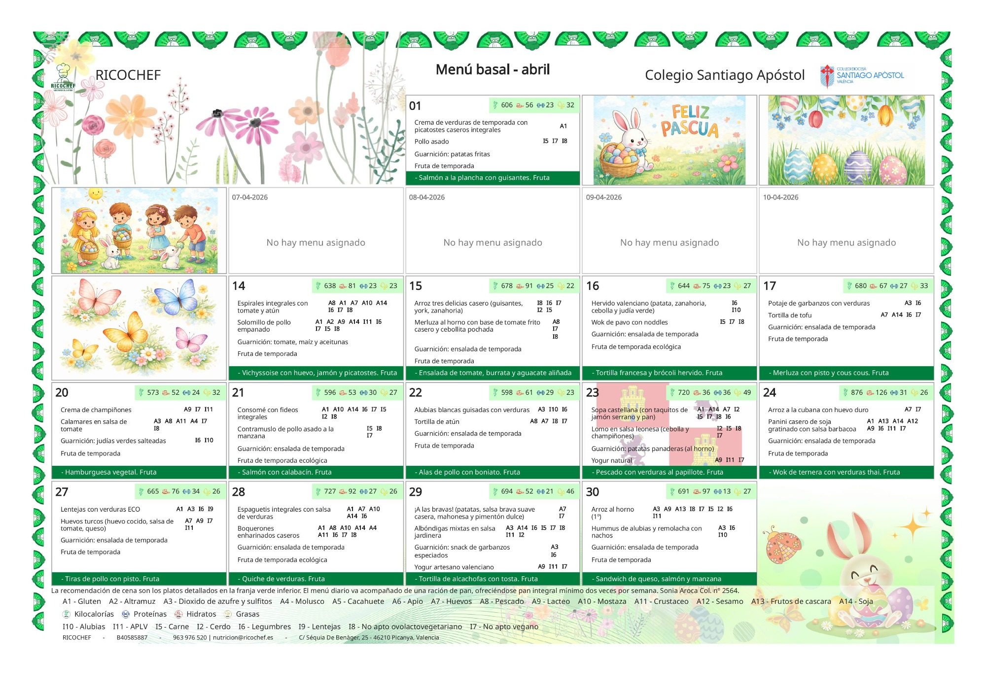Menú mes de abril